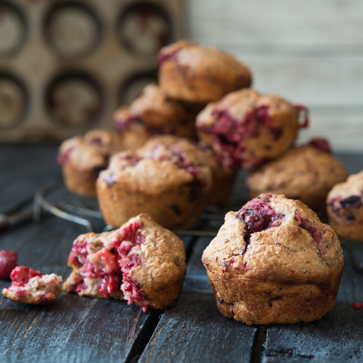 Das Schöne an diesem Rezept: Die Muffins bestechen nicht nur durch das Fehlen von Zucker, sondern auch durch die übrigen Nährstoffe: Bunt gemischte Aminosäuren aus verschieden Mehlsorten und Omega-3-Fettsäuren aus Leinsamen sorgen dafür, dass diese Himbeermuffins echte Nervennahrung sind.